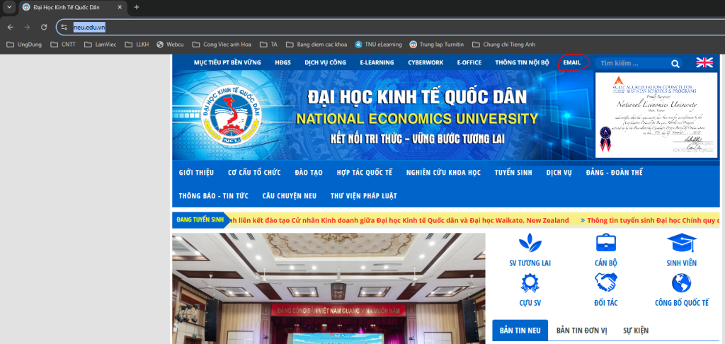 Bước 1: Đăng nhập thông qua website ĐẠI HỌC KINH TẾ QUỐC DÂN: https://www.neu.edu.vn/