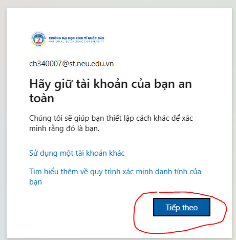 Học viên ấn vào nút “Tiếp theo” để thực hiện đăng nhập
