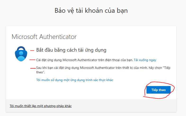 Học viên làm theo yêu cầu: tải xuống và cài đặt ứng dụng Microsoft Authenticator theo yêu cầu