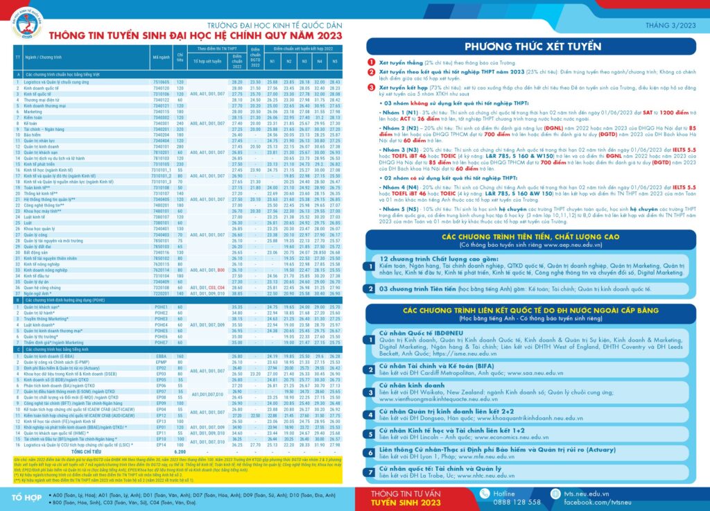 Đề án tuyển sinh Đại học năm 2023 của Trường Đại học Kinh tế quốc dân (update 13/04/2023):