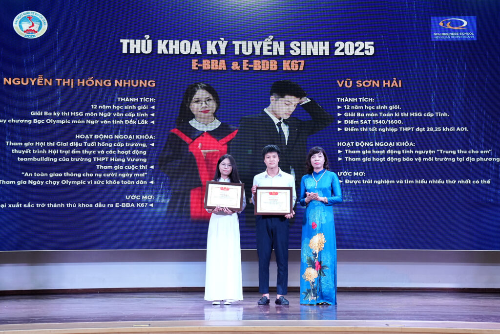 Kỳ tuyển sinh năm 2025 (khóa 67), có 196 tân sinh viên trúng tuyển và theo học các chương trình E-BBA và E-BDB, trong đó có 122 tân sinh viên E-BBA và 74 tân sinh viên E-BDB. Có 2 tân sinh viên trúng tuyển với thành tích xuất sắc (thủ khoa) đã được Giám đốc Đại học ra quyết định khen thưởng và nhận được học bổng cá nhân của nhà tài trơ. 2 tân sinh viên trúng tuyển á khoa cùng nhận được học bổng của ngân hàng BIDV .