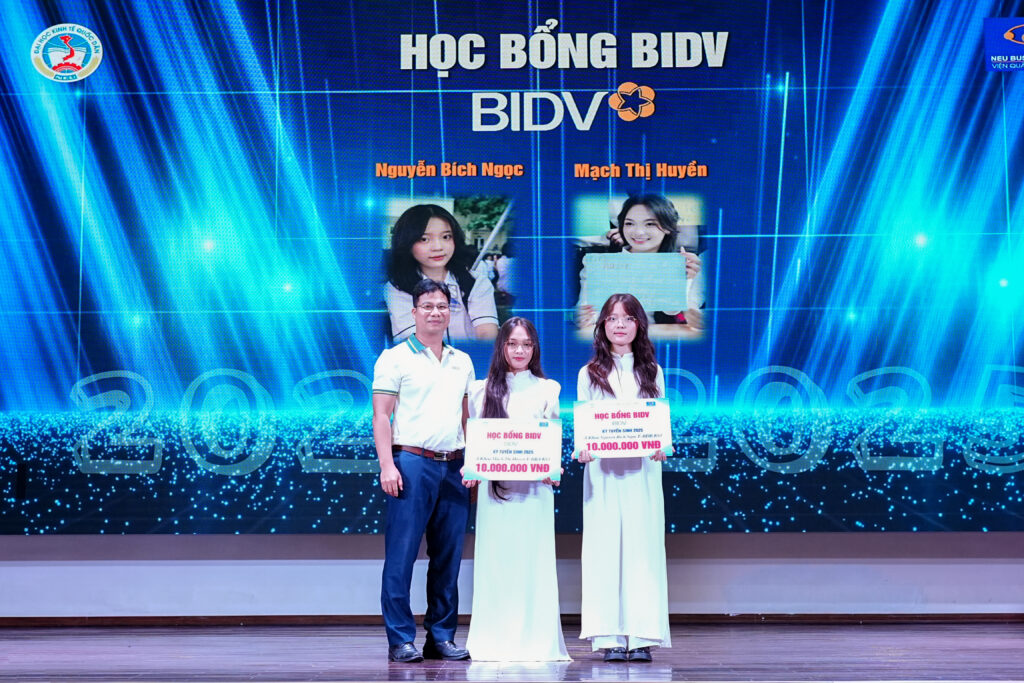 Ông Nguyễn Minh Tuấn – Đại diện Chi nhánh BIDV Đống Đa trao học bổng cho tân sinh viên Á khoa và sinh viên xuất sắc