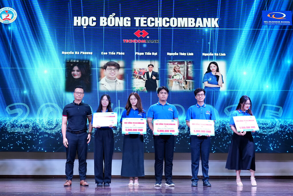 Ông Nguyễn Trung Kiên – Giám đốc chi nhánh Hà Thành- Ngân hàng TMCP Techcombank tro học bổng cho các sinh viên xuất sắc