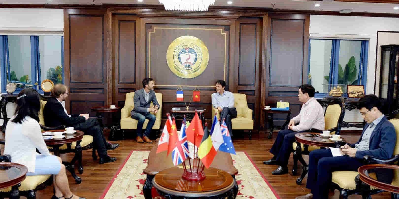 At the meeting, there were Prof. Dr. Tran Tho Dat – Co-Director of CFVG Hanoi; Dr. Dao Thanh Tung – Head of International Cooperation Department; with the staff of the French-Vietnamese Center for Training Management (CFVG).