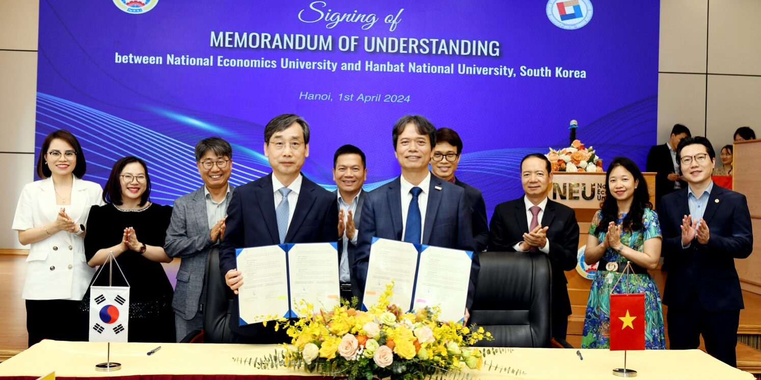 On April 1, 2024, the National Economics University and Hanbat National University (Korea) signed a Memorandum of Understanding to promote academic cooperation and improve cultural understanding. between Vietnam and Korea.
