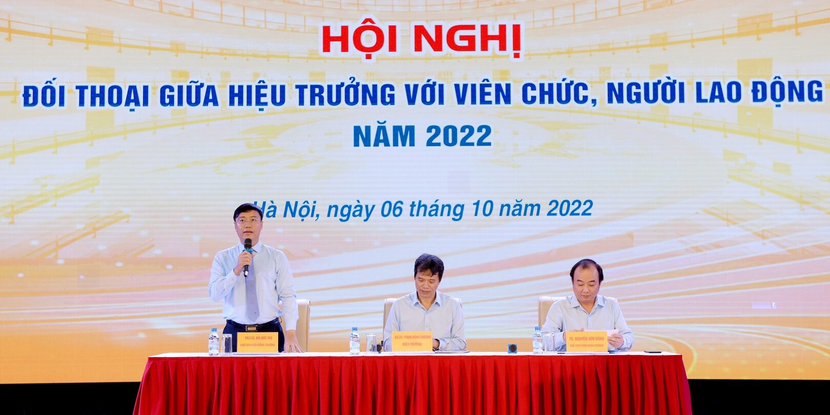 Sáng ngày 06/10/2022, Trường Đại học Kinh tế Quốc dân đã tổ chức Hội nghị Đối thoại giữa Hiệu trưởng với Viên chức, Người lao động năm 2022.