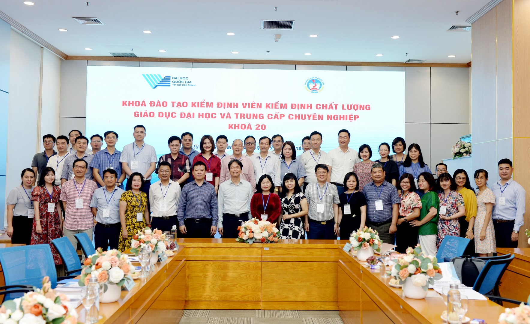 Tham dự khai giảng Khoá đào tạo có GS.TS Phạm Hồng Chương – Hiệu trưởng nhà trường; GS.TS Trần Thị Vân Hoa – Phó Hiệu trưởng; PGS.TS Bùi Huy Nhượng – Phó Hiệu trưởng. Về phía Trung tâm Kiểm định chất lượng giáo dục ĐHQG-HCM có PGS.TS Lê Ngọc Quỳnh Lam – Giám đốc Trung tâm Kiểm định chất lượng giáo dục, Giảng viên Khóa đào tạo KĐV; TS. Nguyễn Quốc Chính – Giám đốc Trung tâm Khảo thí và đánh giá chất lượng đào tạo – Giảng viên khoá đào tạo KĐV; ThS. Hồ Đắc Hải Miên – Phó Giám đốc TTKĐCLGD, Giảng viên Khóa đào tạo KĐV; cùng đại diện lãnh đạo các Phòng ban, Khoa, Viện, Trung tâm; cùng gần 50 cán bộ, giảng viên của Nhà trường là học viên của khóa đào tạo Kiểm định viên (Khoá 20).
