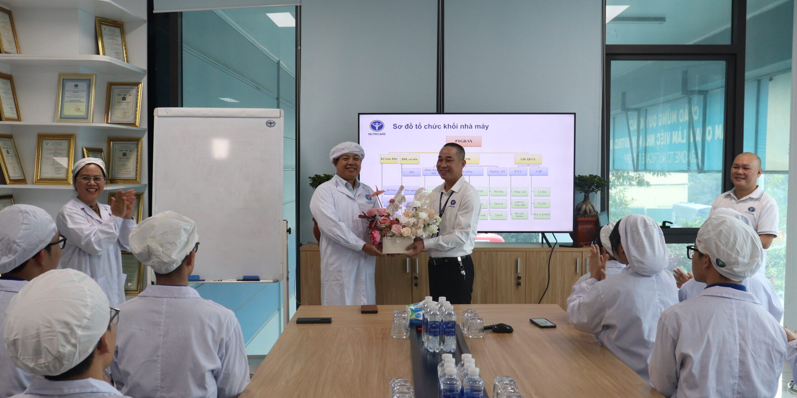 Sau khi thay xong các trang phục bảo hộ, sinh viên được dẫn lên hội trường để lắng nghe những lời chia sẻ rất hữu ích từ hai doanh nhân đại diện cho Doanh nghiệp là Phó Tổng Giám đốc Hoàng Công Quý và Ông Đoàn Đức Hoá – phụ trách về quản trị hệ thống. Các sinh viên được nghe giới thiệu về sơ đồ tổ chức quản lý của Doanh nghiệp sơ đồ tổ chức khối nhà máy, hành trình phát triển của doanh nghiệp, nhu cầu dinh dưỡng vòng đời đối với người tiêu dùng, các đối tác chiến lược của Công ty, trách nhiệm xã hội của doanh nghiệp và các chứng chỉ hoặc giải thưởng mà công ty đã đạt được trong suốt hơn 20 năm qua. Có thể nói, chuyến đi này đã cho sinh viên chúng em một cơ hội vô cùng quý giá, giúp các sinh viên ngành Quản trị Kinh doanh thực tế hóa được các kiến thức chuyên ngành và có góc nhìn hiện thực hơn về các quy trình và cách thức vận hành của một doanh nghiệp.