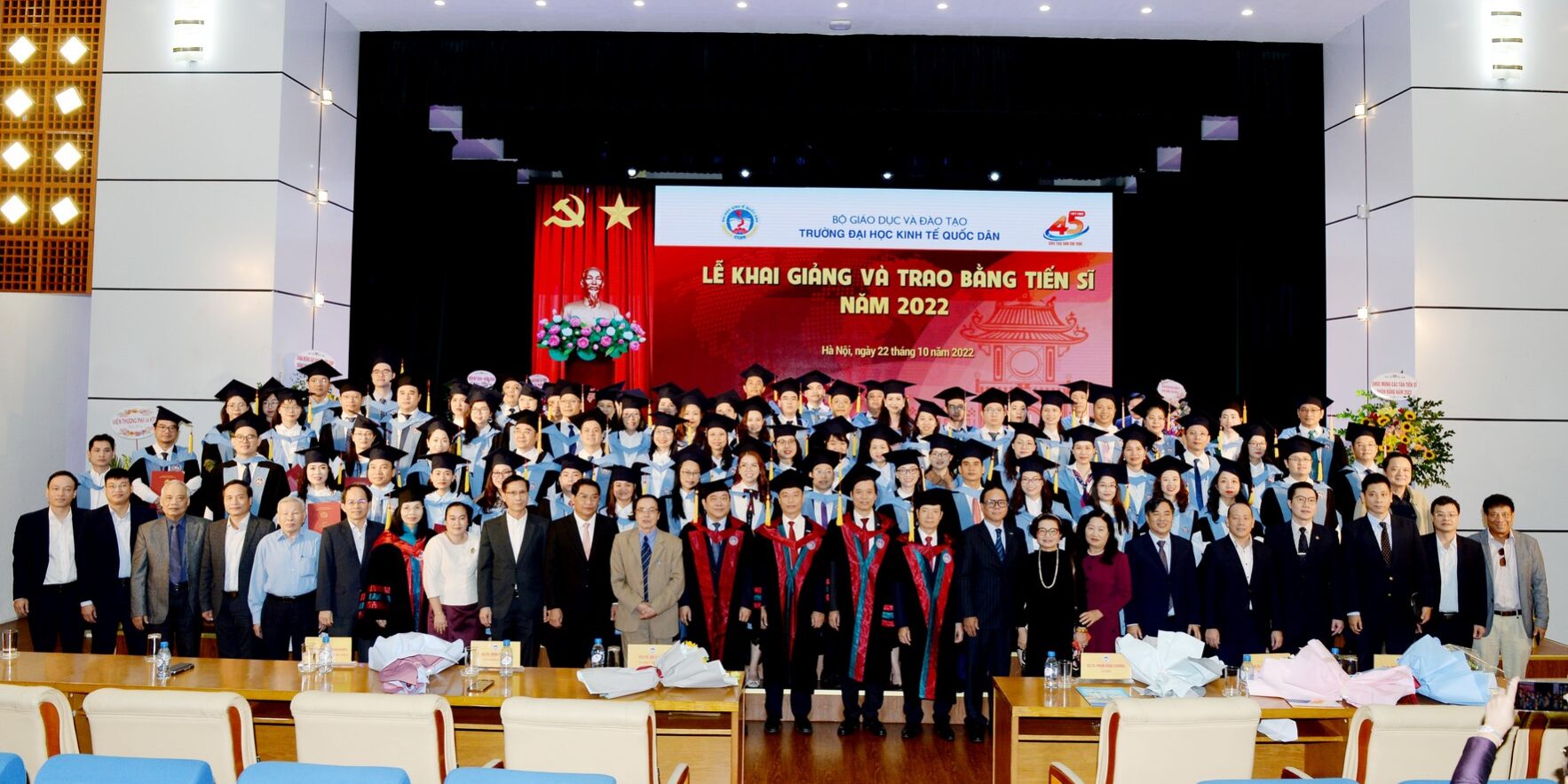 Sáng ngày 22/10/2022, tại Trường Đại học Kinh tế Quốc dân đã diễn ra Lễ Khai giảng và trao bằng Tiến sĩ cho 62 Tân Nghiên cứu sinh và 82 Tân Tiến sĩ đã bảo vệ thành công luận án trong năm 2022.