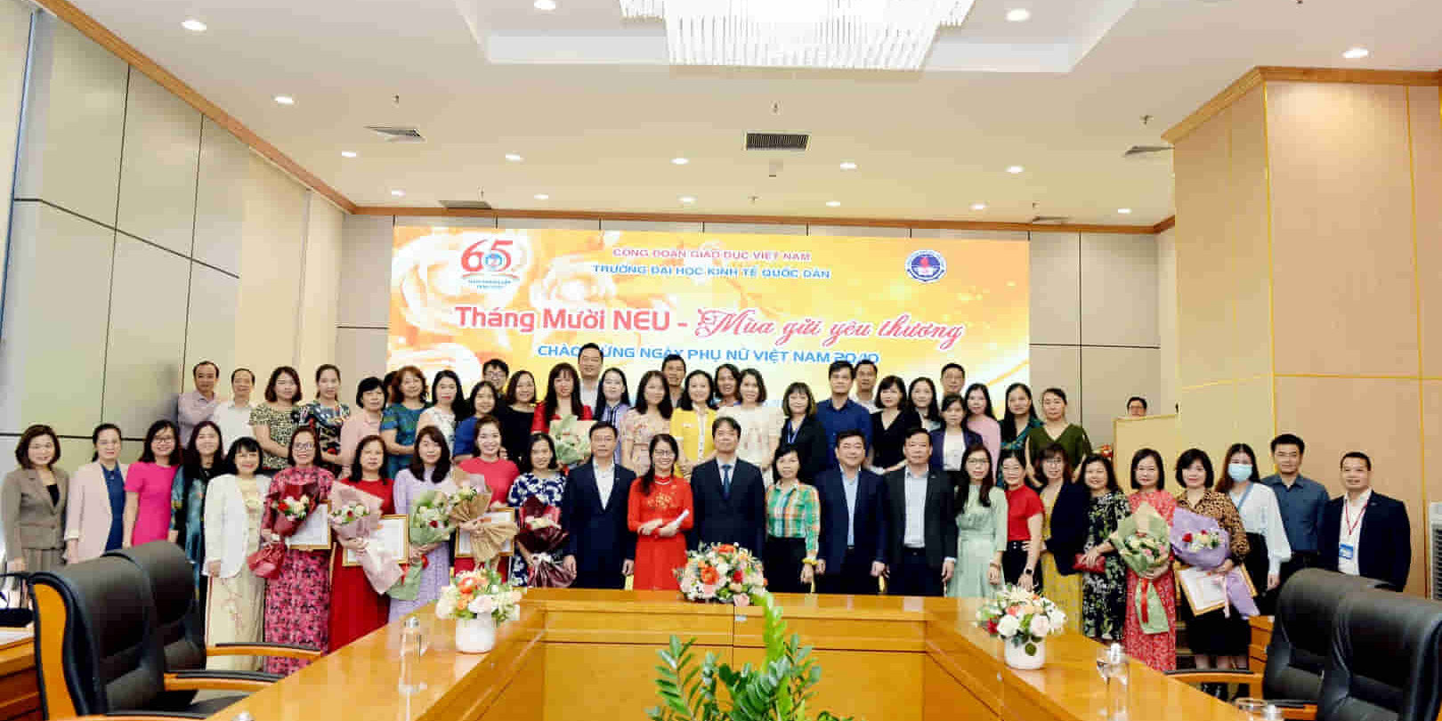 Sáng ngày 20/10/2021, Trường Đại học Kinh tế Quốc dân đã tổ chức chương trình: “Tháng Mười NEU – Mùa gửi yêu thường” để tổng kết phong trào: “Giỏi việc trường – Đảm việc nhà” nhân kỉ niệm 91 năm thành lâp Hội Liên hiệp Phụ nữ Việt Nam ( 20/10/1930-20/10/2021).