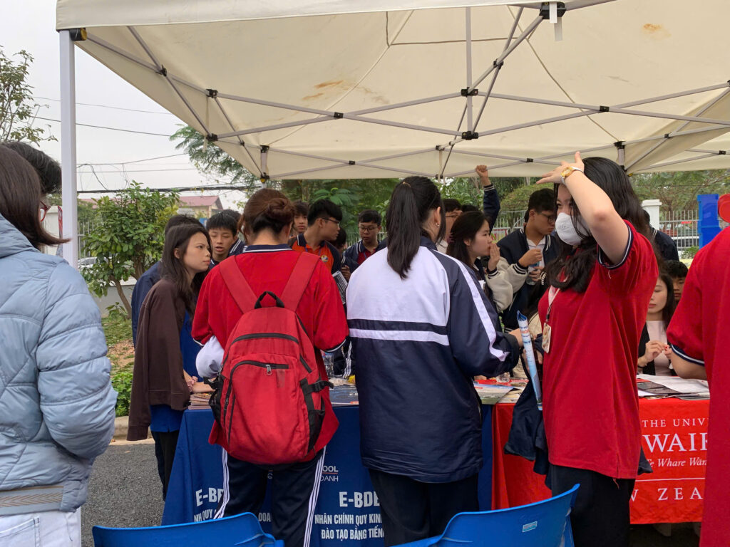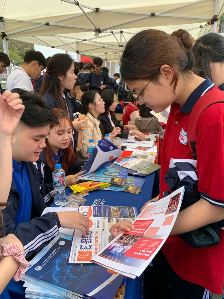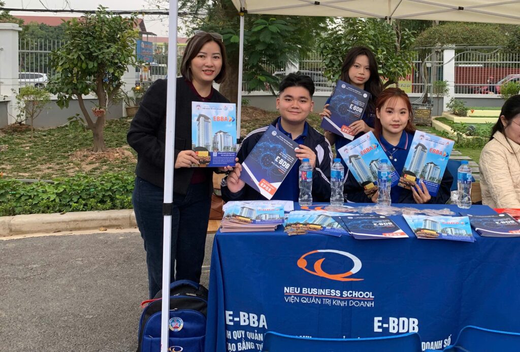 Đặc biệt, khu vực tư vấn của các khoa, viện thuộc Đại học Kinh tế Quốc dân nhận được sự quan tâm lớn từ học sinh. Trong đó, không gian tư vấn của Viện Quản trị Kinh doanh với hai chương trình cử nhân chính quy đào tạo bằng tiếng Anh là Chương trình Cử nhân Quản trị Kinh doanh (E-BBA) và Chương trình Cử nhân Kinh doanh Số (E-BDB) là một trong những điểm thu hút nổi bật nhất.